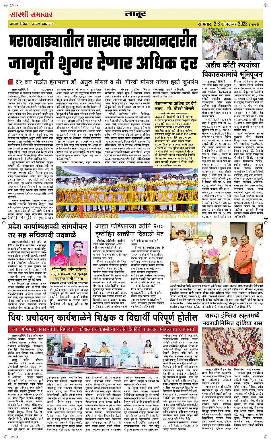 Latur Page: 6 October 23, 2023 << First << 6 >> Last >> Page 1Page 2Page 3Page 4Page 5Page 6 × Latur Page 1Page 2Page 3Page 4Page 5Page 6 << First << 6 >> Last >> Page 1Page 2Page 3Page 4Page 5Page 6 Page 6