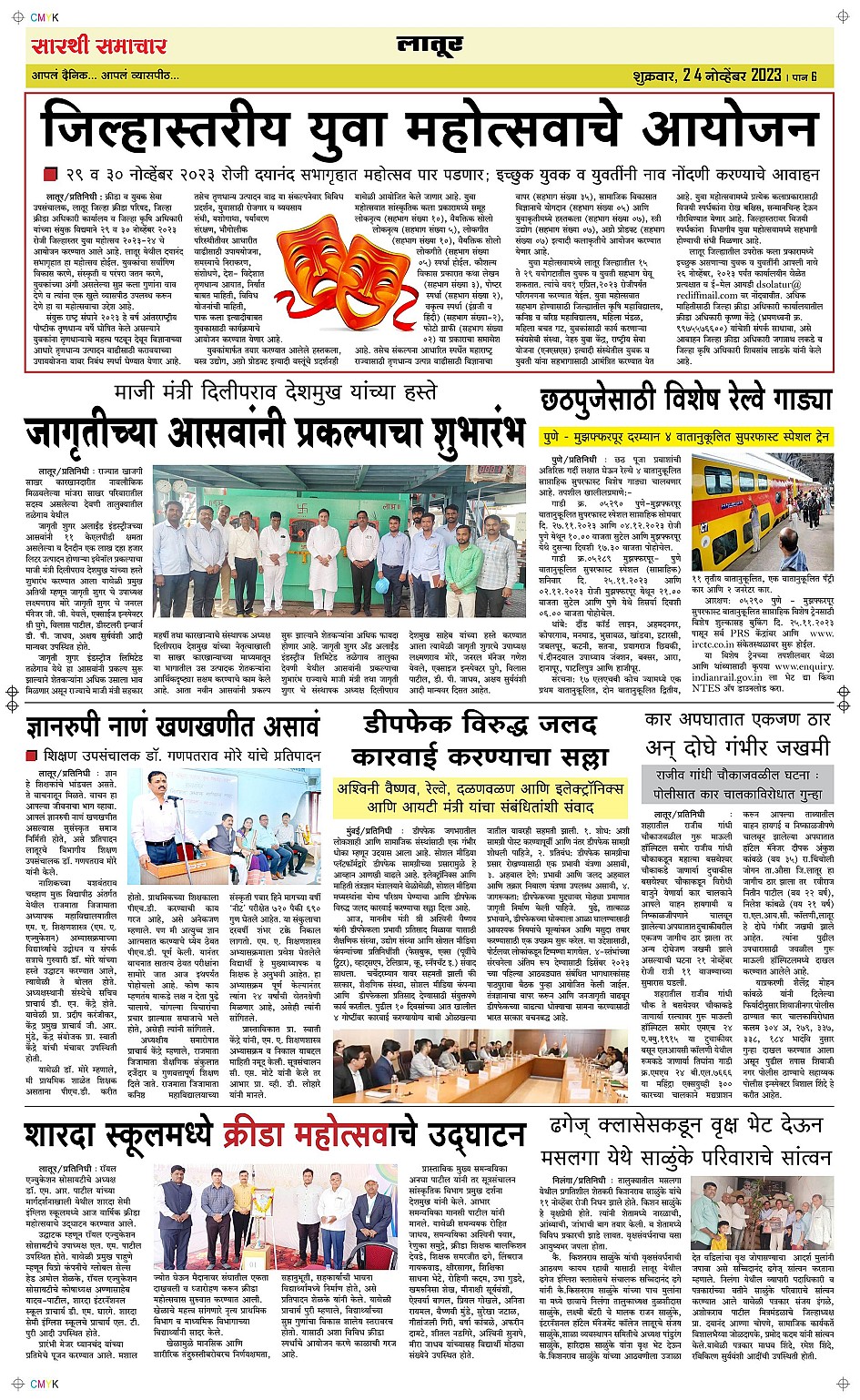 Latur Page: 6 November 24, 2023 << First << 6 >> Last >> Page 1Page 2Page 3Page 4Page 5Page 6 × Latur Page 1Page 2Page 3Page 4Page 5Page 6 << First << 6 >> Last >> Page 1Page 2Page 3Page 4Page 5Page 6 Page 6