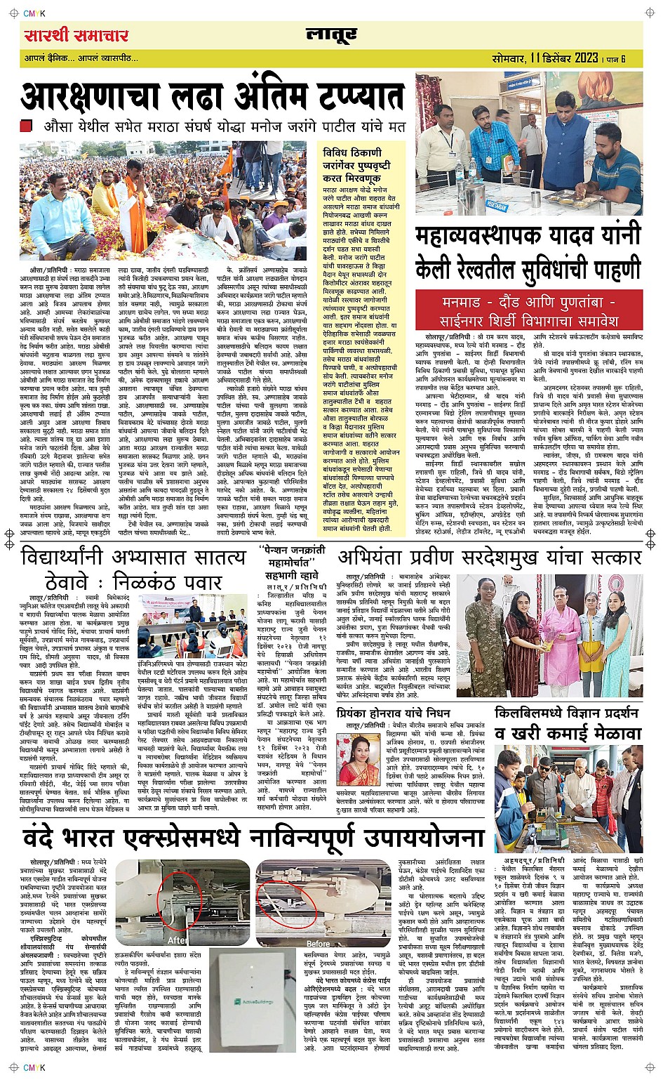 Latur Page: 6 December 11, 2023 << First << 6 >> Last >> Page 1Page 2Page 3Page 4Page 5Page 6 × Latur Page 1Page 2Page 3Page 4Page 5Page 6 << First << 6 >> Last >> Page 1Page 2Page 3Page 4Page 5Page 6 Page 6