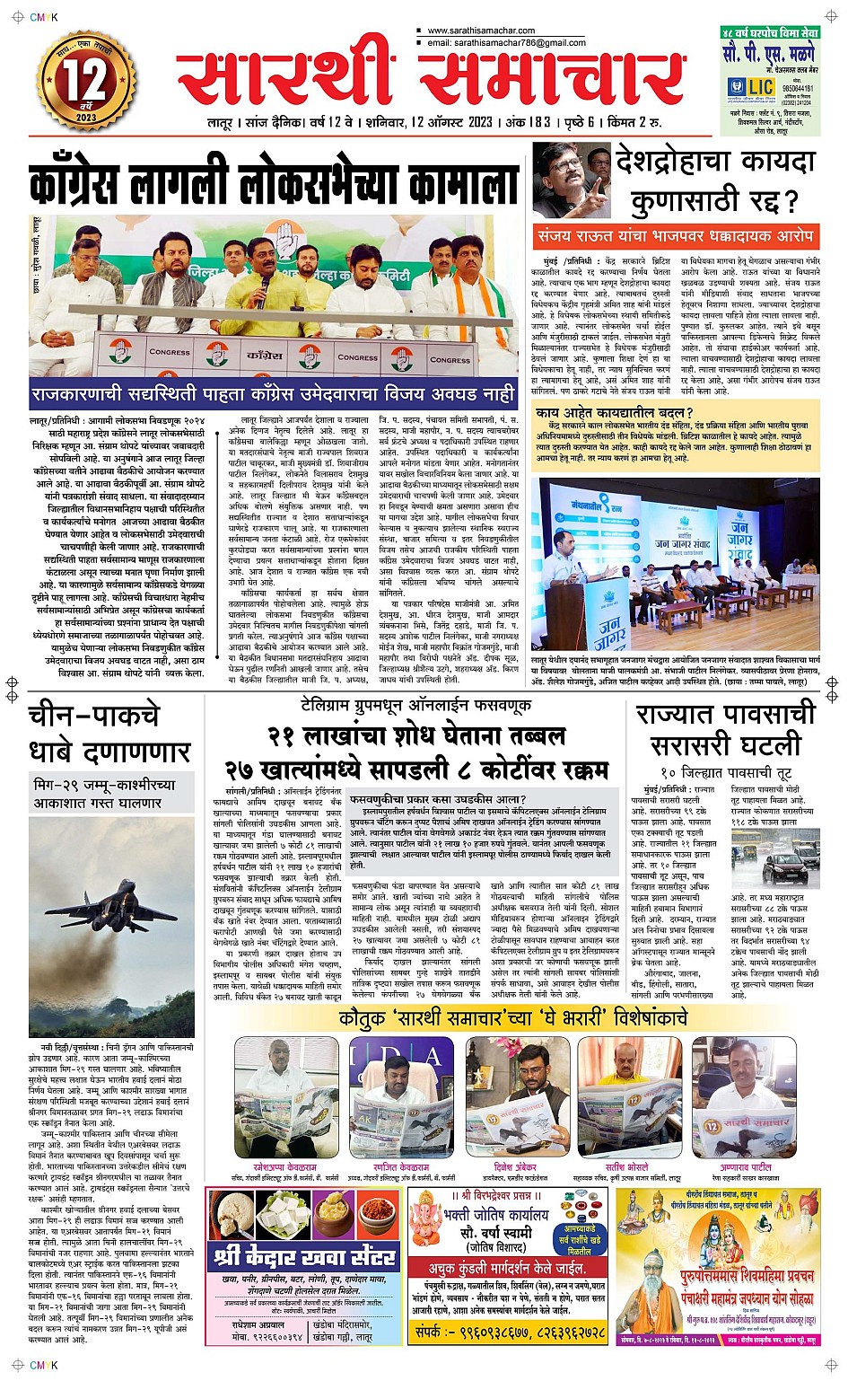 Latur August 12, 2023 << First << 1 >> Last >> Page 1Page 2Page 3Page 4Page 5Page 6 × Latur Page 1Page 2Page 3Page 4Page 5Page 6 << First << 1 >> Last >> Page 1Page 2Page 3Page 4Page 5Page 6 Page 1