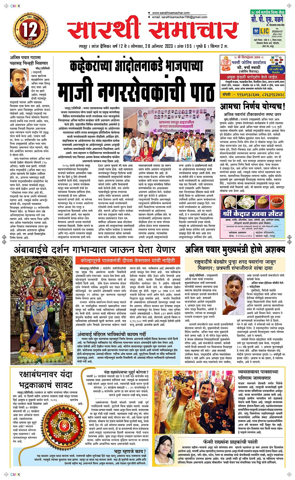 Latur August 28, 2023 << First << 1 >> Last >> Page 1Page 2Page 3Page 4Page 5Page 6 × Latur Page 1Page 2Page 3Page 4Page 5Page 6 << First << 1 >> Last >> Page 1Page 2Page 3Page 4Page 5Page 6 Page 1