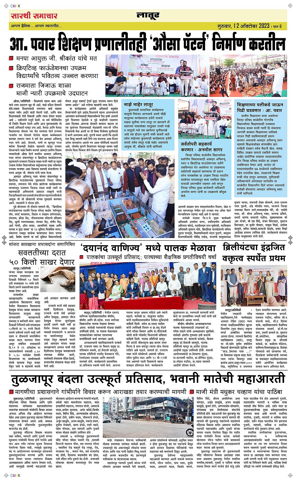 Latur Page: 6 October 12, 2023 << First << 6 >> Last >> Page 1Page 2Page 3Page 4Page 5Page 6 × Latur Page 1Page 2Page 3Page 4Page 5Page 6 << First << 6 >> Last >> Page 1Page 2Page 3Page 4Page 5Page 6 Page 6