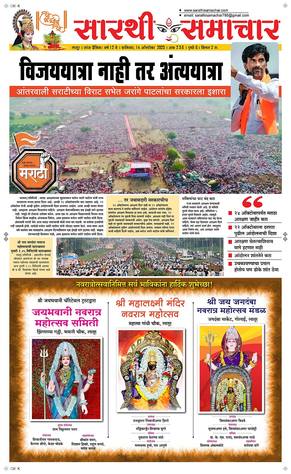 Latur October 14, 2023 << First << 1 >> Last >> Page 1Page 2Page 3Page 4Page 5Page 6 × Latur Page 1Page 2Page 3Page 4Page 5Page 6 << First << 1 >> Last >> Page 1Page 2Page 3Page 4Page 5Page 6 Page 1